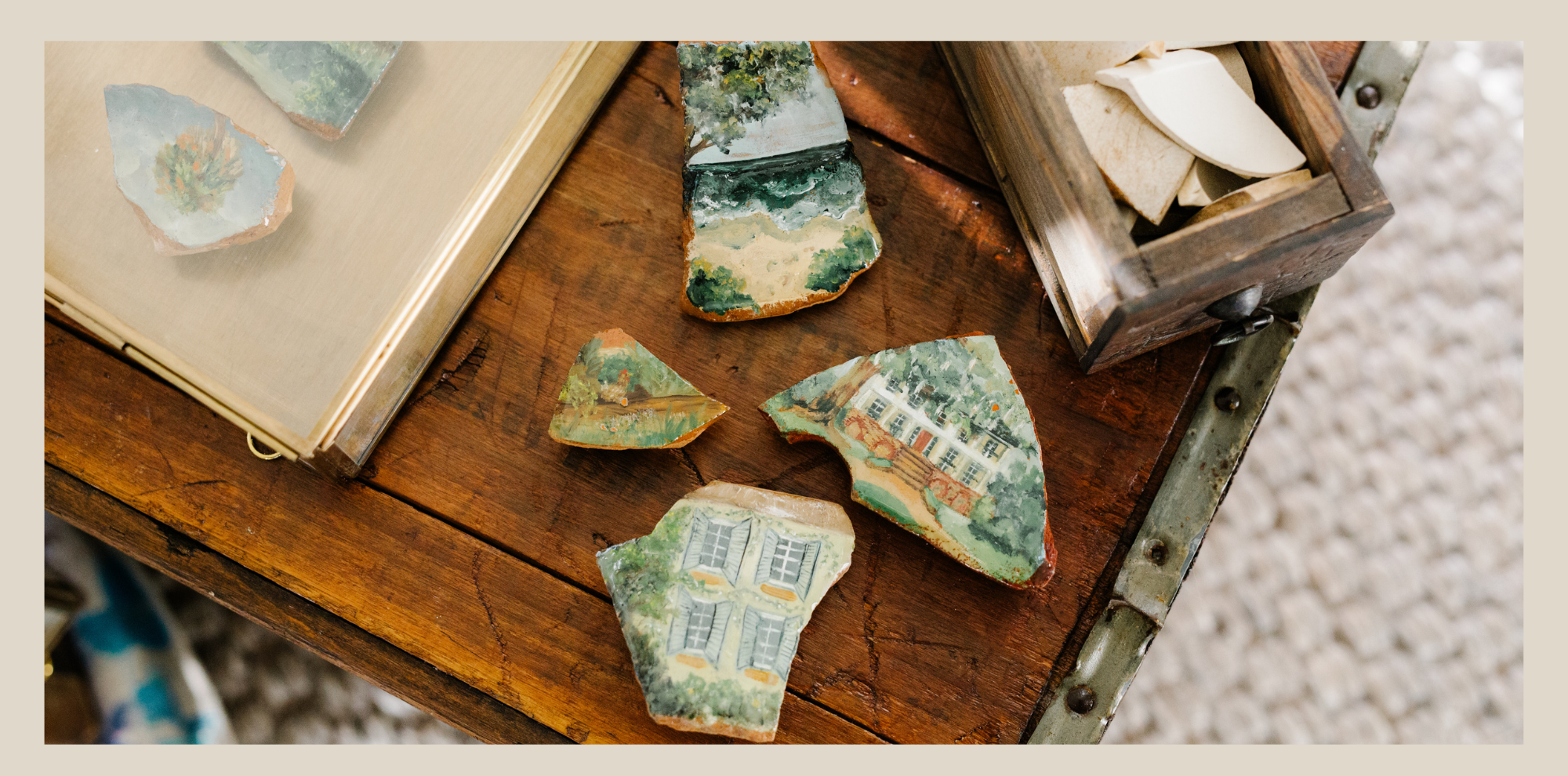 My practice transforms found pottery shards into painted relics—merging archaeology, fine art, and storytelling.